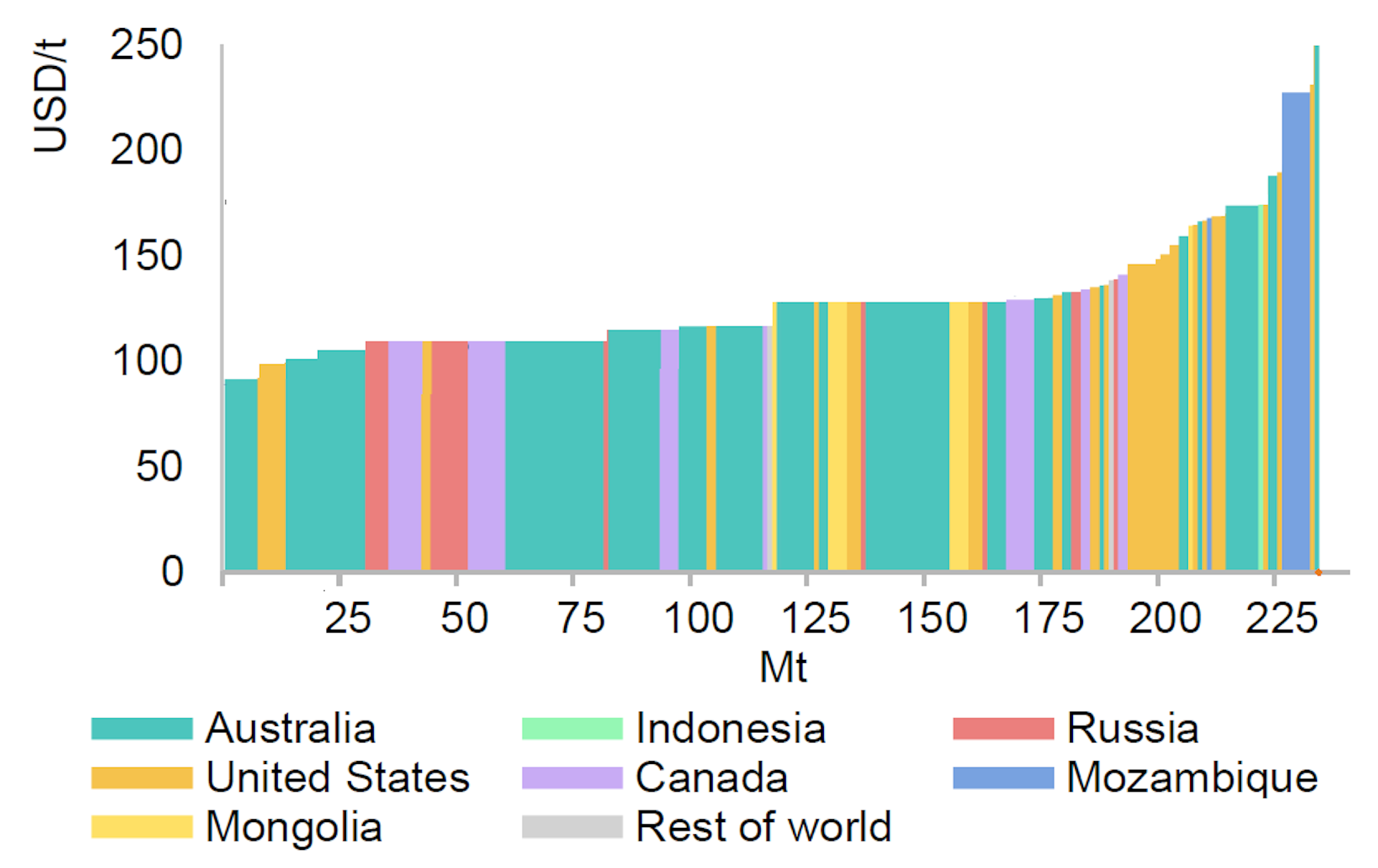 In the case of metallurgical[8] (coking) coal used to make steel, Australia’s mines are mostly at the low-cost end of the spectrum as shown below: