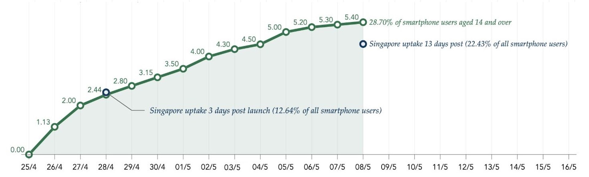 It’s 18 days since the government launched its digital contact-tracing app COVIDSafe. The latest figure we have for downloads is 5.4 million[1], on May 8, about 29% of smartphone users aged 14 and over.