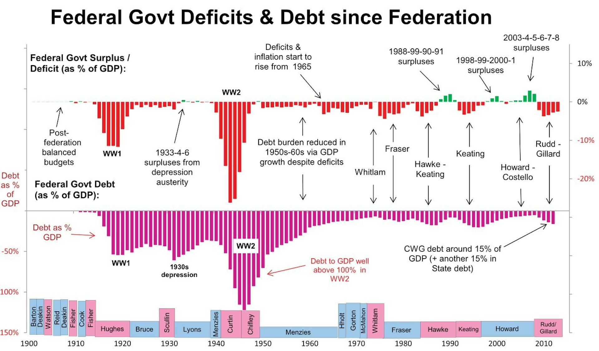 Yet for almost all of the years since Federation – almost every one – the Commonwealth budget has been in deficit, right through til the late 1980s.