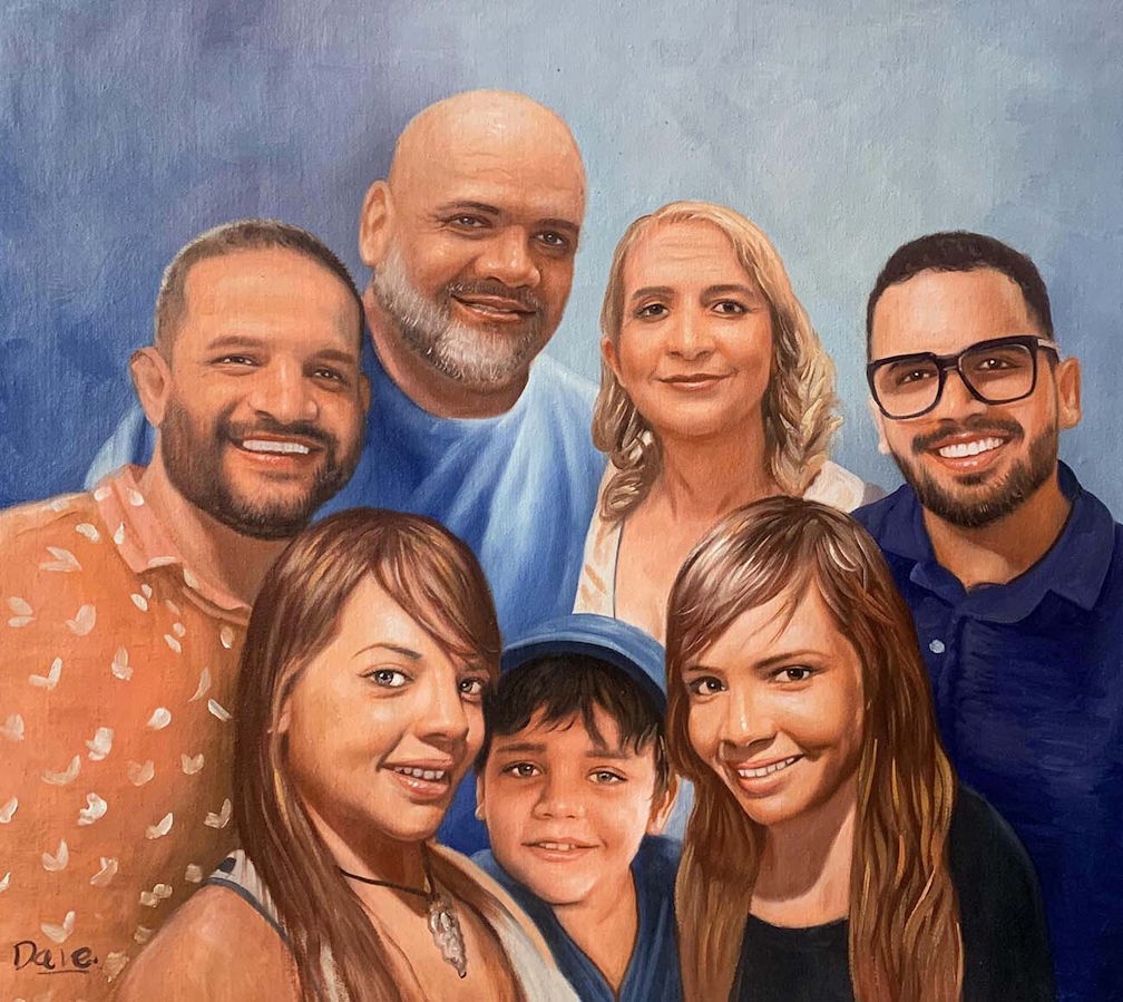 Bridging Generations: A family in California commissioned a painting that united four generations, including great-grandparents who had passed away decades ago. The artist used old photographs to depict the great-grandparents as they appeared in their prime, while the other family members were portrayed as they are today.