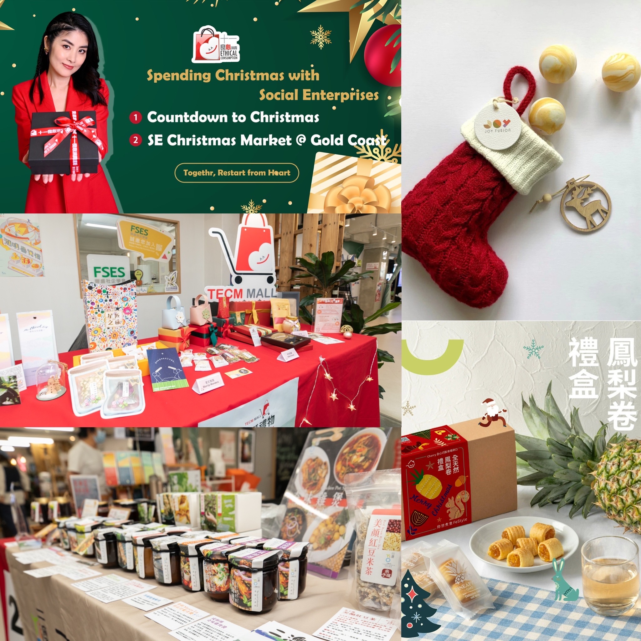 FSES is once again joining hands with Joyful and Health Chinese Medicine Centre (JHCM) to host a Christmas Market at Gold Coast Piazza in Tuen Mun from December 17th to 18th, 2022. Over 10 local social enterprises who provide training and career opportunities for different disadvantaged groups, such as Joy Fusion, Rhys, and Sharing Kitchen, will be presented at the Christmas Market. Come join us to experience and hear their touching stories in person!