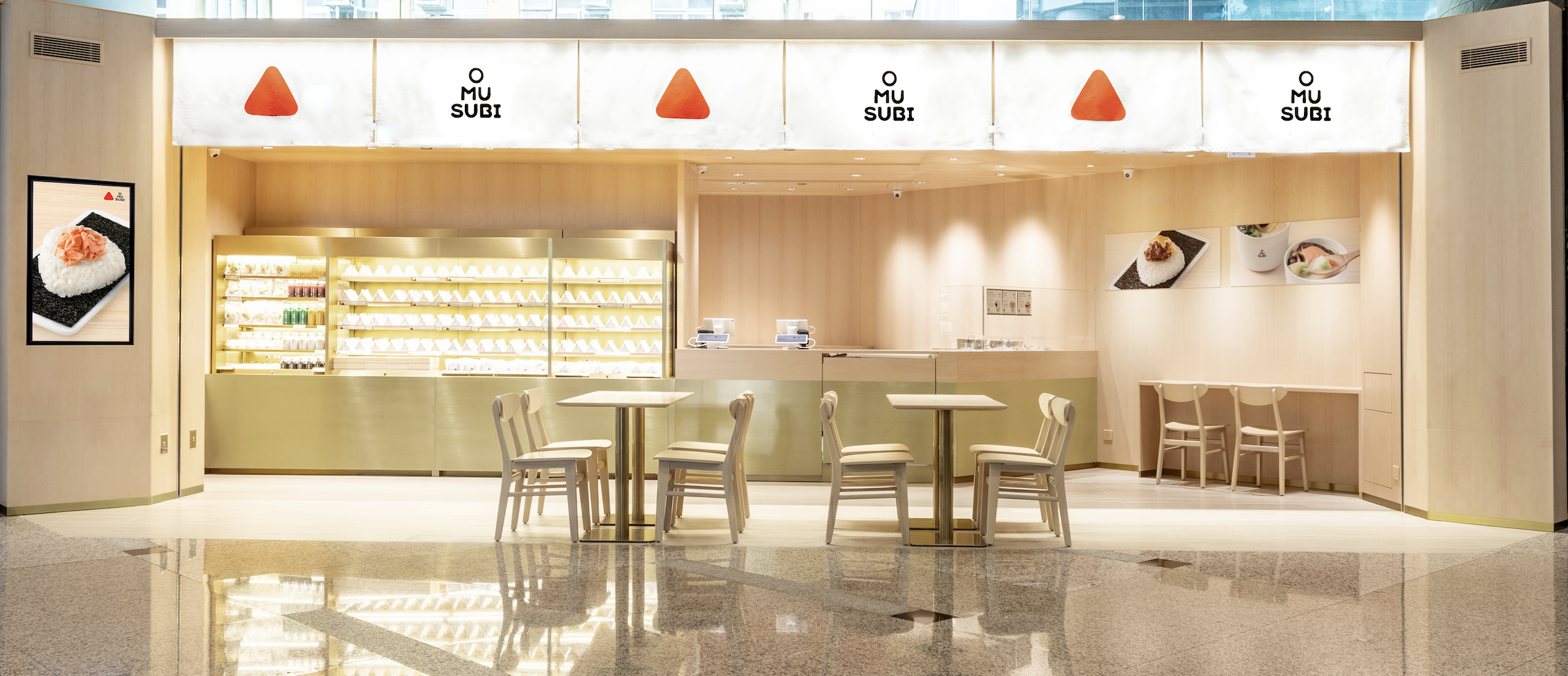 Our new store in Taikoo Place is the first OMUSUBI store to offer a seating area for customers to enjoy the delicious soup and Omusubi. Mr. Kashiwa Sato, brand creative director, has been overseeing the design of the brand. In accordance with our principle of environmental protection and sustainability, the store design uses white cloth, brass and white wood as primary materials, and it is in line with the brand’s overall consistency.
