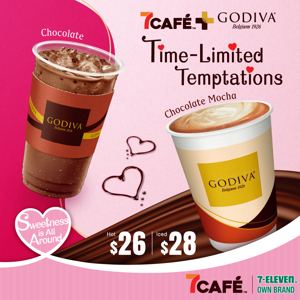 This unmissable "Limited Edition Sweet Surprises" series of 7CAFÉ+GODIVA drinks are available from 1 February. Share a sweet moment with your sweetheart this February and express your love with a 7CAFÉ+GODIVA drink!
